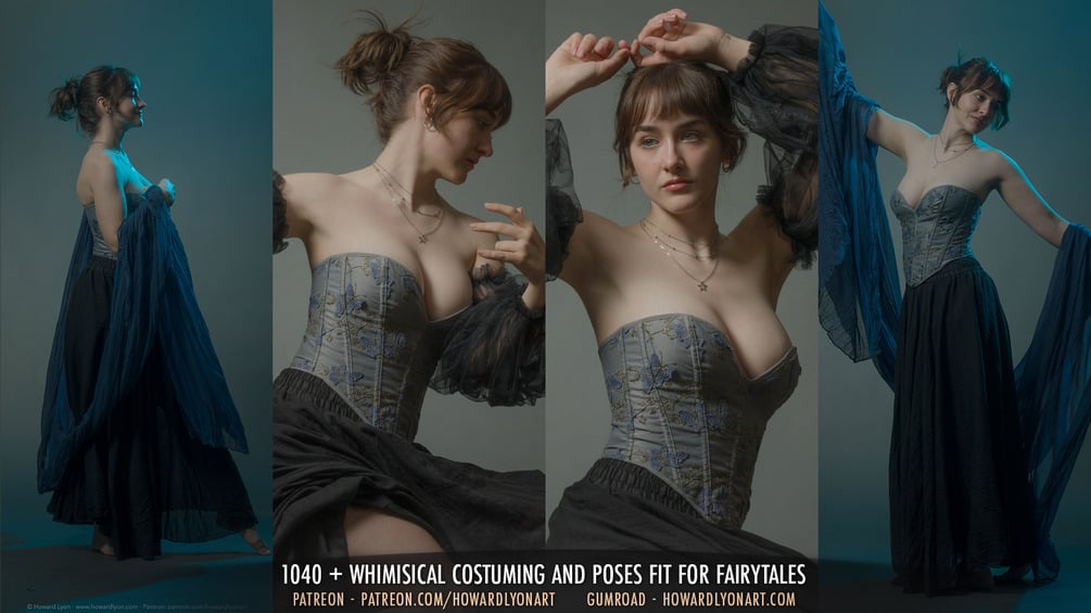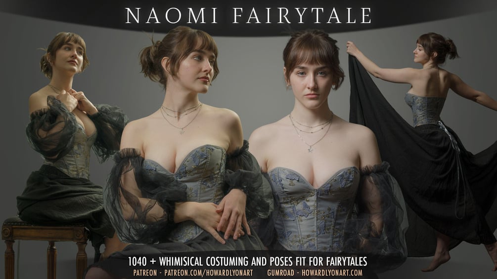 Naomi is back again this month in a beautiful set inspired by a fairytale aesthetic. Naomi is an experienced model and also an excellent artist! I find that artists often make wonderful models because they have experience on behind a camera and that helps inform poses and expressions. I think you'll find this set really useful for gestures and studies with all of the great poses provided.