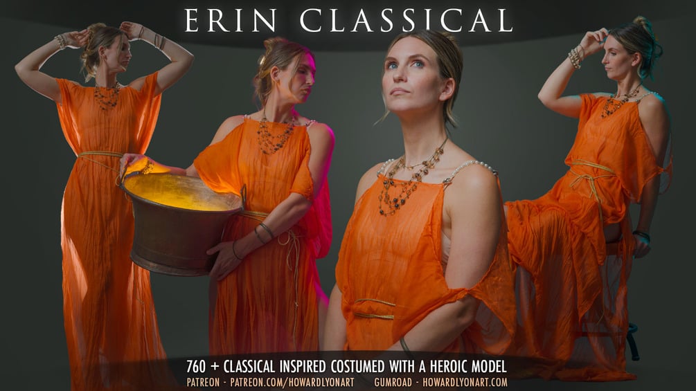 Erin is a new model for reference packs. I think you'll love her tall athletic figure and the beautiful costuming used in this set. This is part 1. Stay tuned for part 2 coming soon! The poses and costume are inspired by classical themes.