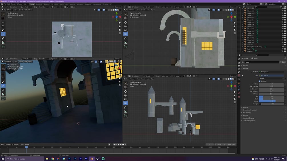 This video is geared towards oil painting, but also shows the steps taken to create a digital comp and my use of Blender to create a 3D model for the scene.