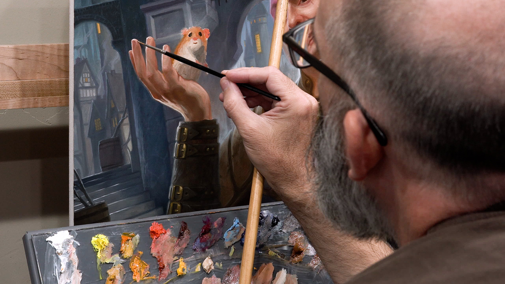I show my sketches, my digital comp, the reference, 3D model, and then the entirety of the oil painting process as a time-lapse with commentary about the process.