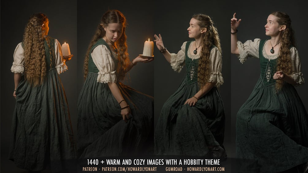 I am so happy to publish this set of images! It features my amazing friend, Nicole. She is a brilliant artist and dear friend. She has a love of LoTR and fantasy and we teamed up to create this fun set, inspired by Hobbits. I think you'll love creating from this warm, cozy set of images!