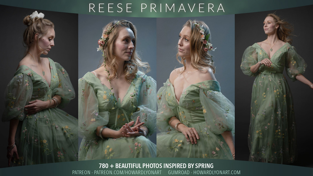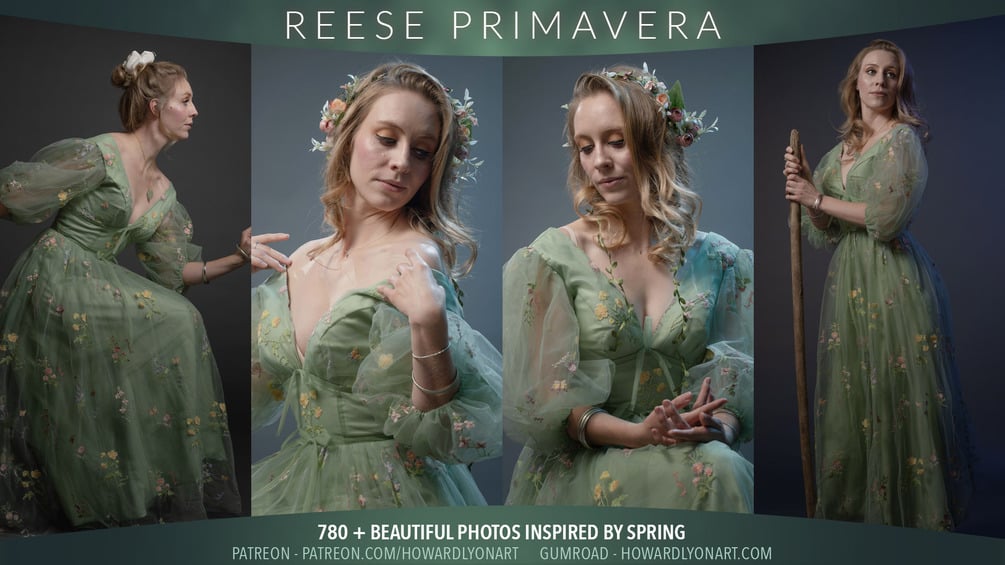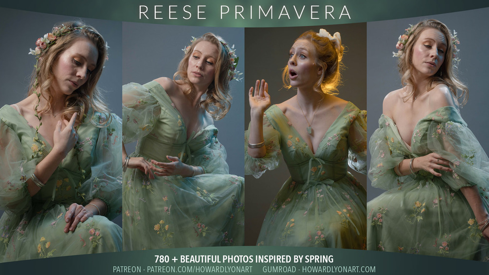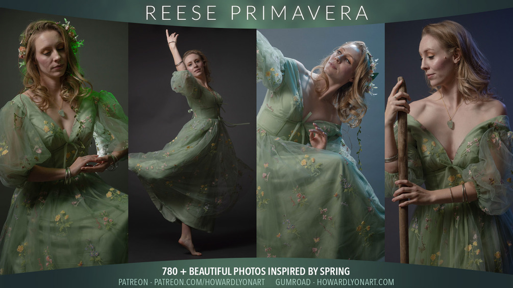 Reese is a professional art model, actor, singer, and dancer. You've seen her in a few other sets now. She is wonderful to work with and you'll love the beauty of the costuming, the light, and of course Reese and her great expressions and poses. Reese is a trained dancer, actor, and singer and she brings all of that to each shoot.